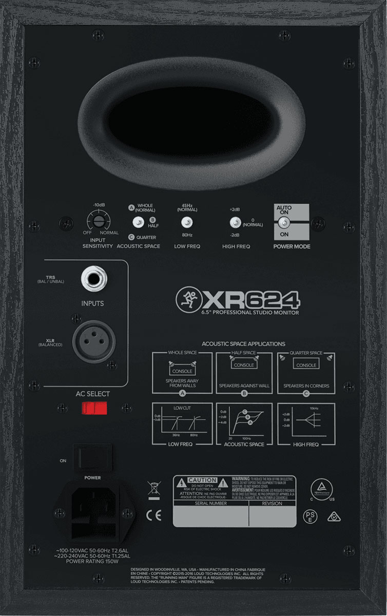 Monitor da studio XR624, offre prestazioni e precisione di suono attualmente richieste dagli studi professionali. La guida d’onda logaritmica insieme al woofer da 6,5 ??'(Kevlar) e al sistema Bass Reflex ELP ci consente di offrire un midrange / treble perfettamente bilanciato con notevole profondità oltre a bassi estremamente precisi. Caratteristiche principali: 6.5 ‘(Kevlar woofer) + 1’ (tweeter). Classe B amplificata D LF + HF (100 + 60 W). Risposta in frequenza: 45 Hz – 22 kHz. Filtro acustico-spaziale, HF e LF. Dimensioni: 333 x 219 x 320 mm Peso: 10,6 kg.