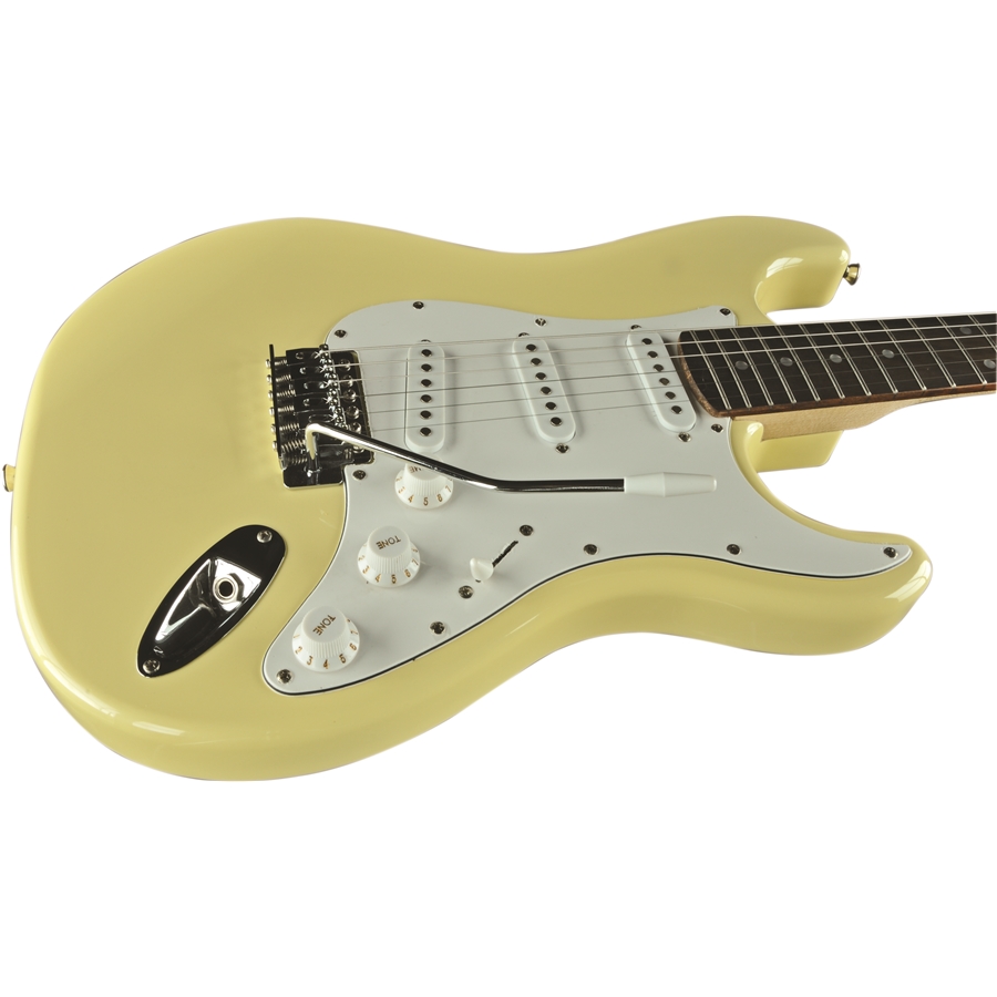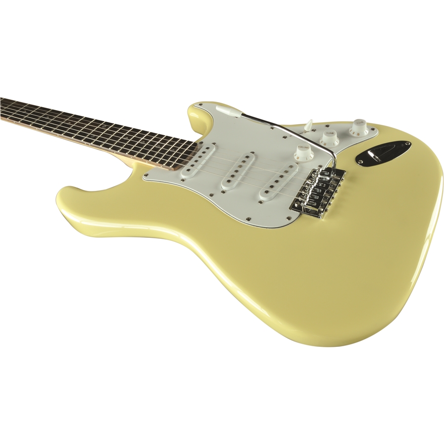 Eko S-300 CREAM Dalla classica forma stratocaster, questa s 300 ha configurazione S/S/S, due toni un volume e selettore a 5 posizioni. Corpo in tiglio, manico in acero, tastiera in South American Roupanà a 22 tasti. Disponibile in più colorazioni.