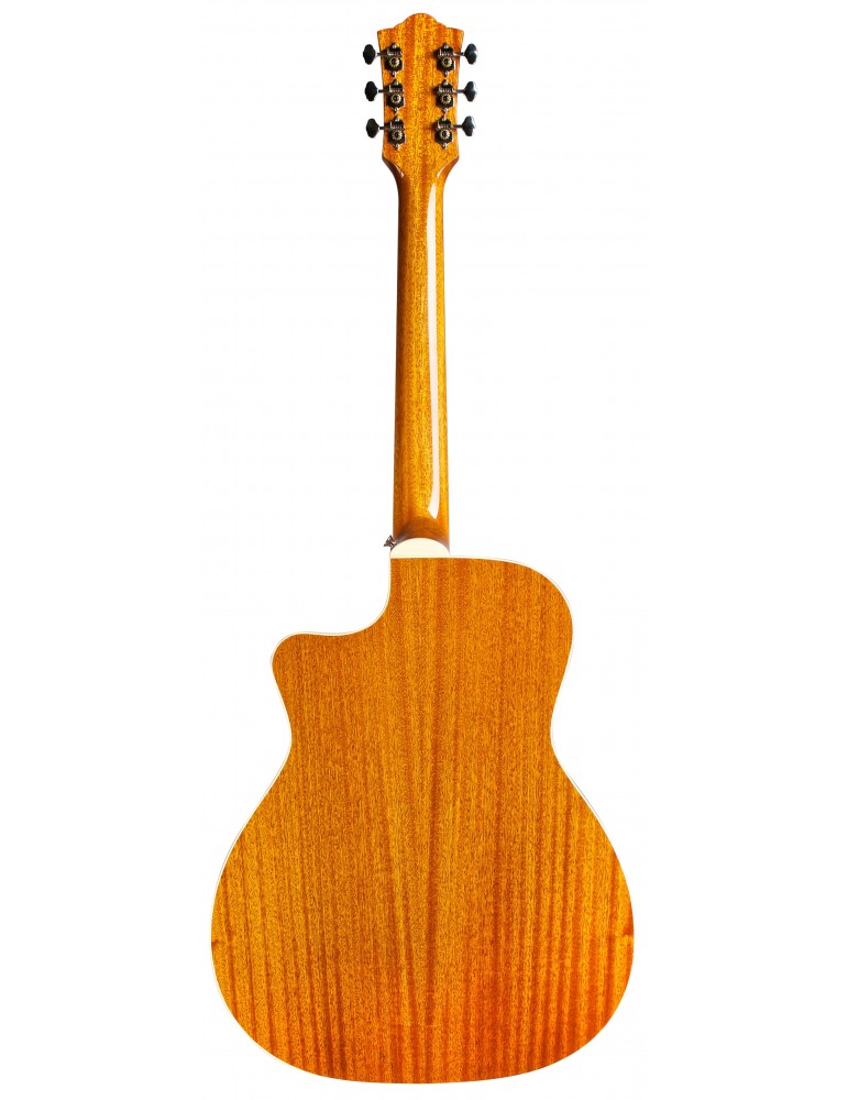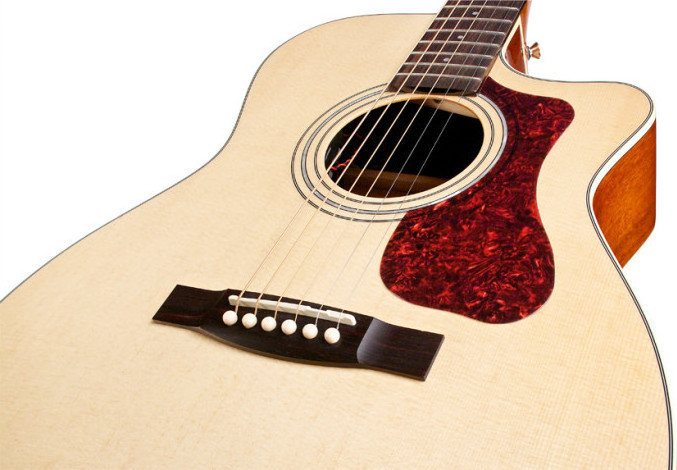 Il pickup in dotazione sulla Guild OM-140CE Nat è un Fishman GT-1 Sonitone per live performances di ottimo livello. Altre caratteristiche includono il nut e traversino in osso, rosetta in madreperla.